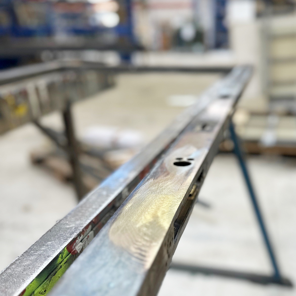 Inom kort kan man återigen öppna de här ytterdörrarna med tillhörande tjusiga draghandtag på Grev Tureplan, Stureplan. De har slitits hårt, gått sönder, lagats, slagits om, byggts om gång på gång under de senaste 90 åren. De har varit i eländigt skick. Men med hjälp av Nasim och Tommie på Lundgrens Smide som löder, svetsar och återpatinerar i just mässing så får de nytt liv igen. Kul och ovanligt att få jobba med just genomgående mässing, och inte som oftast, klädda stålpartier.