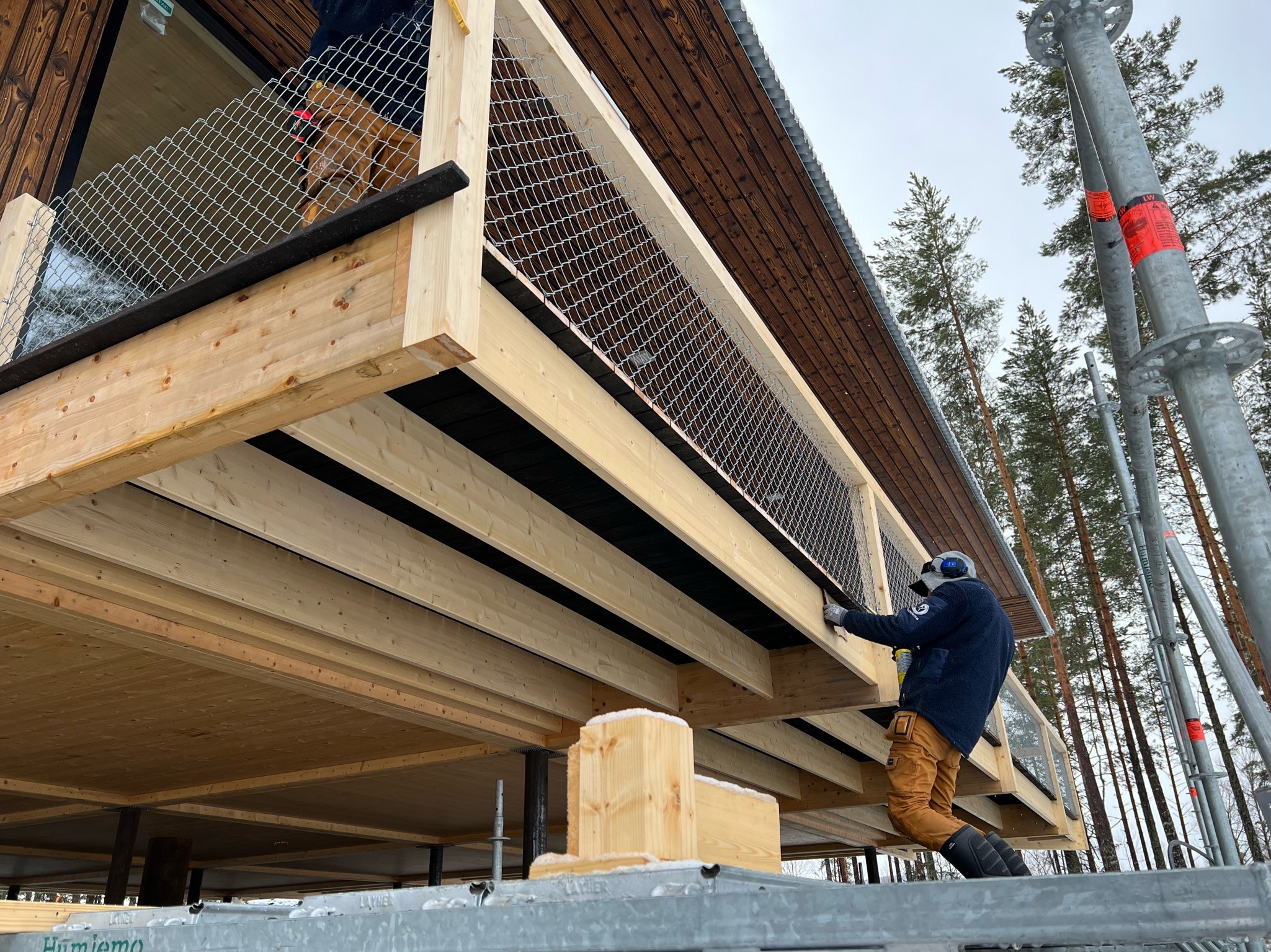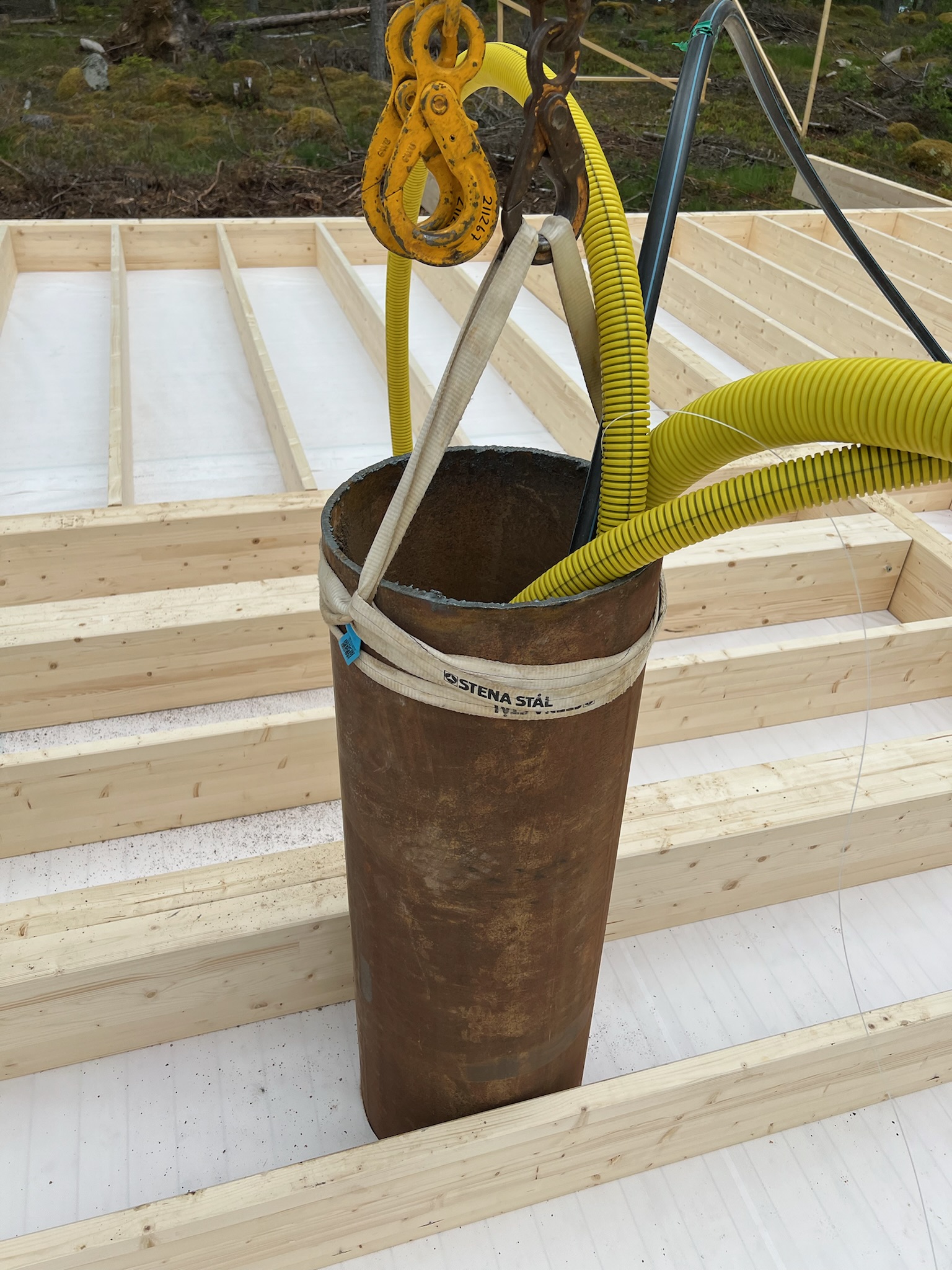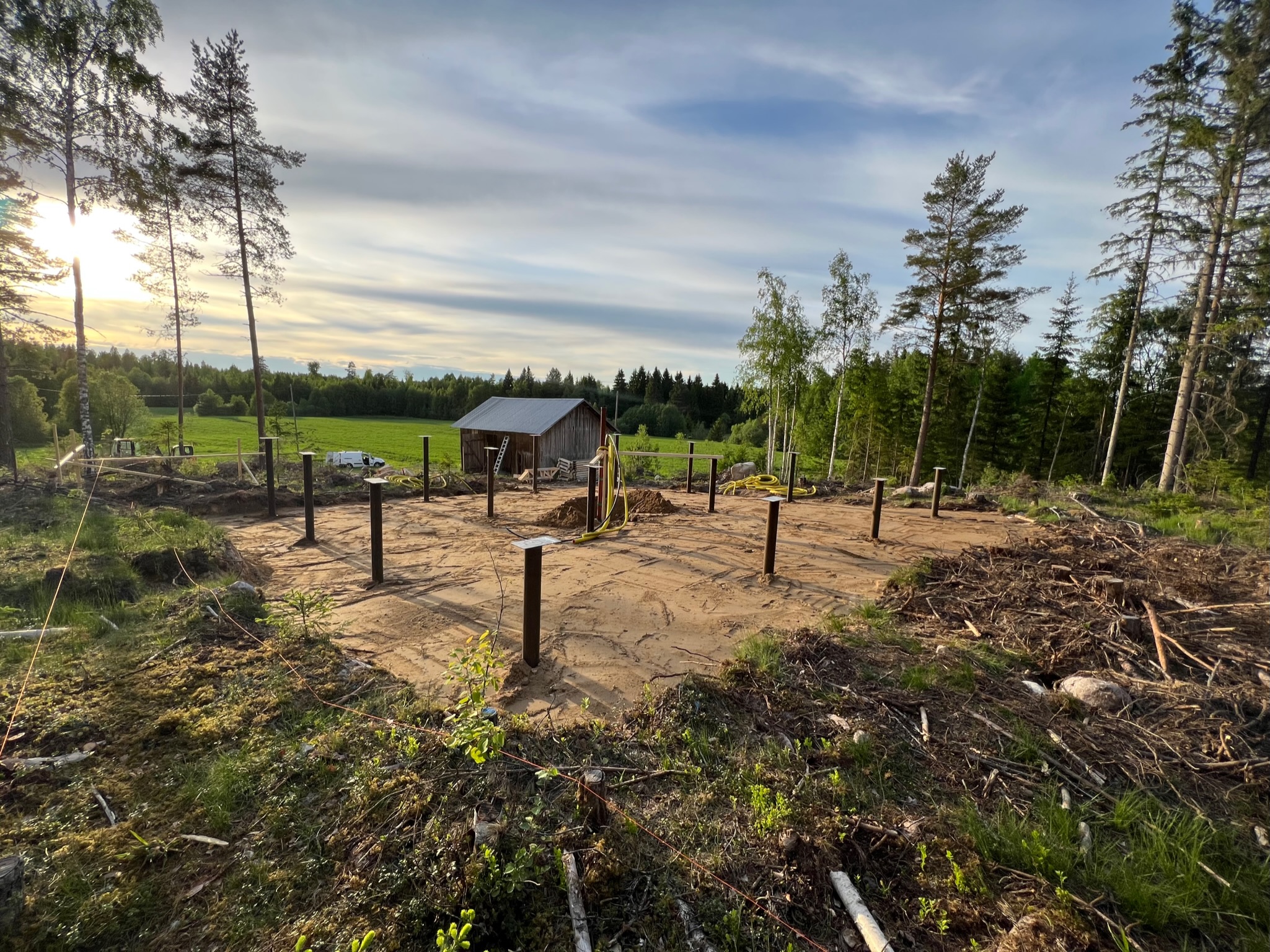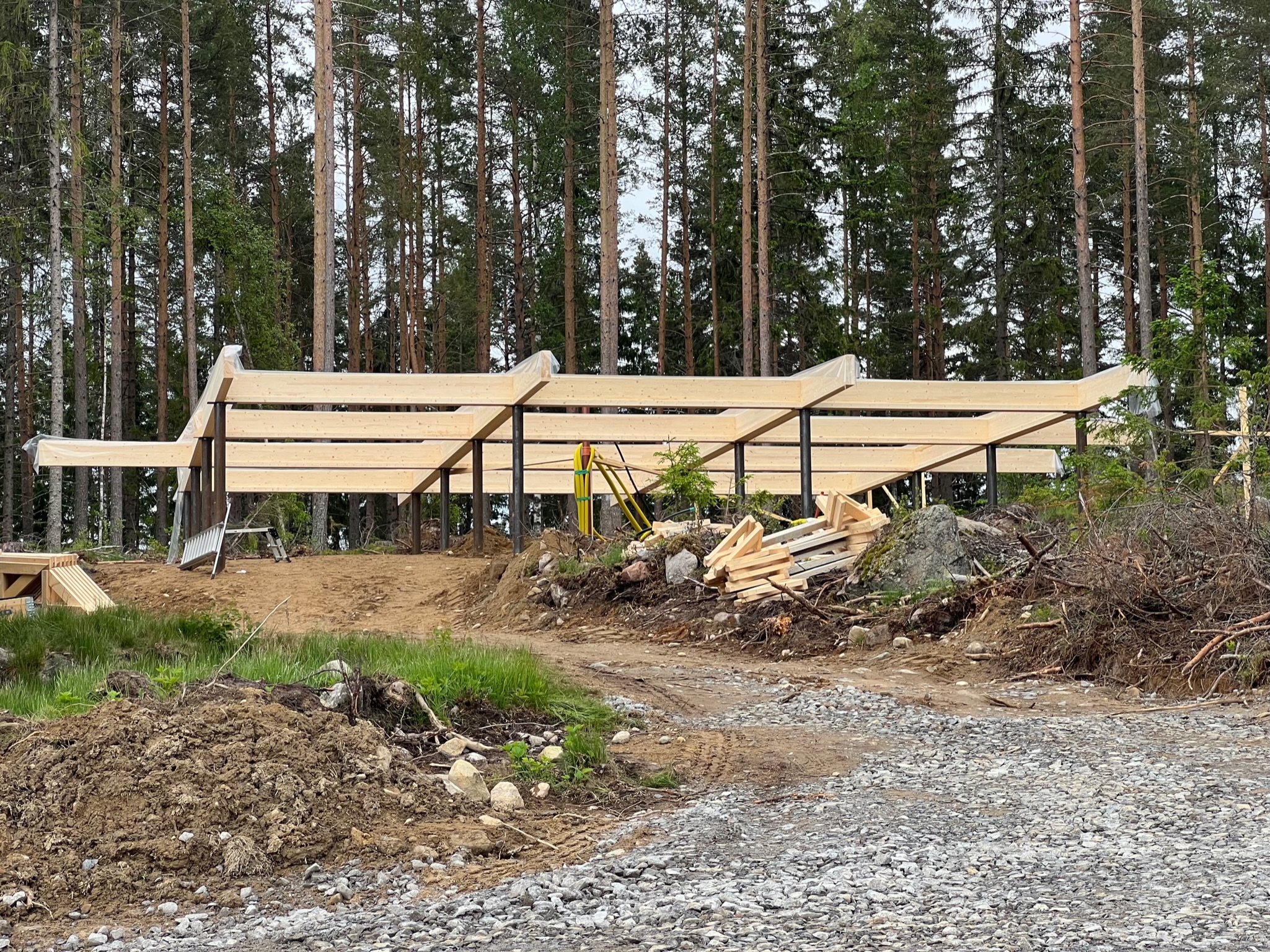 Fritidshus i Hälsingland med stomme och invändiga ytskikt av massivt KLT (korslimmat trä). Planlösningen är kvadratisk med stora fönster mot skog och sjö. Pyramidtakets överhäng skyddar mot värme på sommaren och mot snö på vintern men släpper in den låga vintersolen. Utvändig fasadpanel är av bränd och borstad furu.